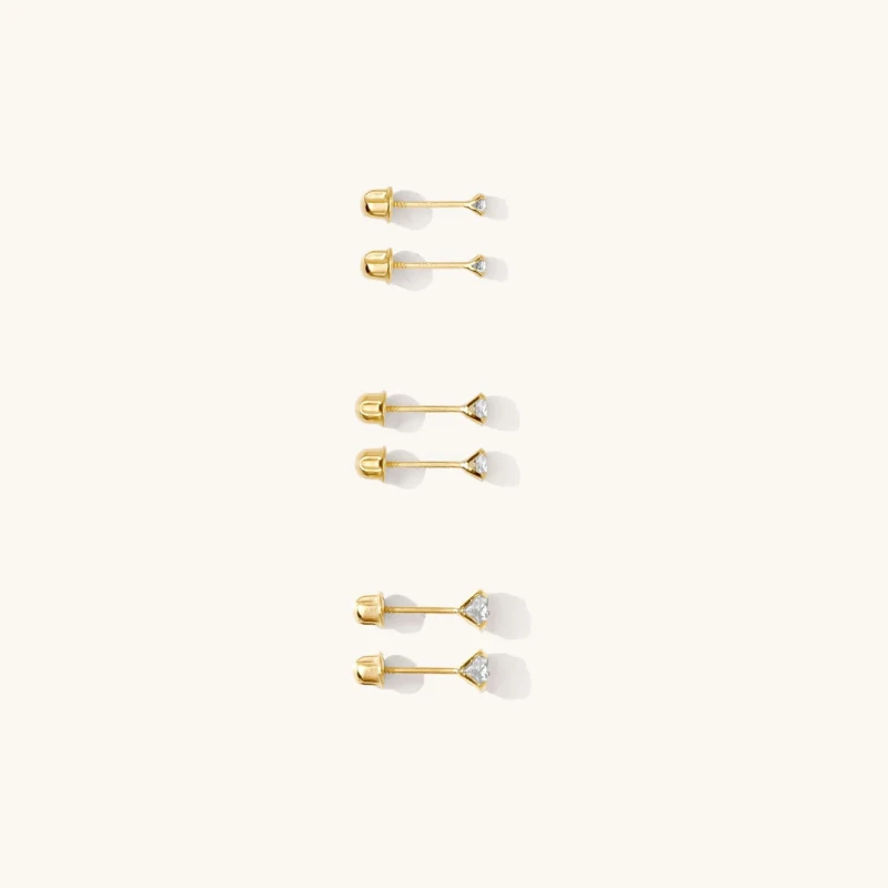 Sparkly and dainty, the Tiny CZ Screwback Stud Earrings are subtle yet stunning. They're so dainty and lightweight that you?ll forget they're even on. They have rounded screw backs so they're perfect for 24/7 wear without your head getting poked. Dress them up or down - either way, they'll instantly make you feel more confident and put together! Made of solid gold, they are ready for years of little dates and big adventures together.