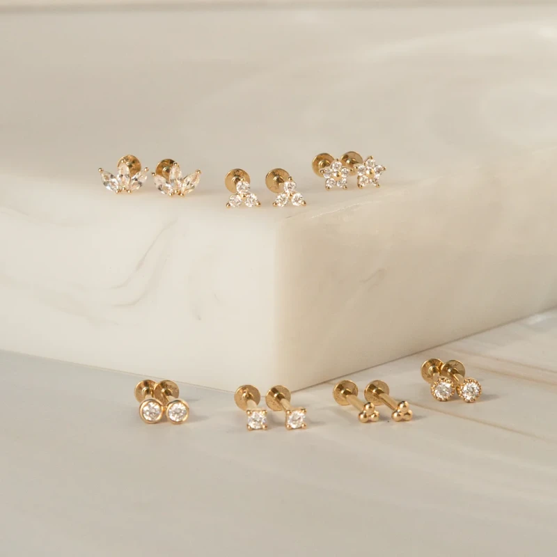 Gazala, adorable, and incredibly sparkly - the Triple Diamond Flat Back Earrings will be your new favorite studs. Crafted in gorgeous 9k solid gold and korean diamonds, these studs are both light and durable, offering a touch of confident sparkle throughout your daily adventures.