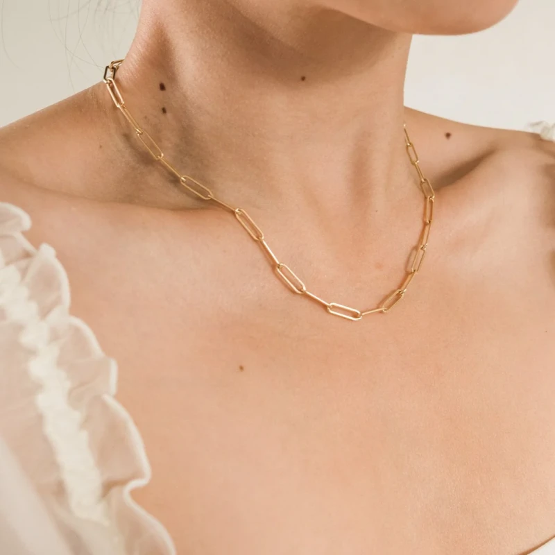 Our Chunky Paperclip Necklace is the perfect chain for those who want to add a bold pop to their look! It's a statement piece while still being minimal enough to wear daily. You can wear it from the gym, to the shower, and even to sleep!