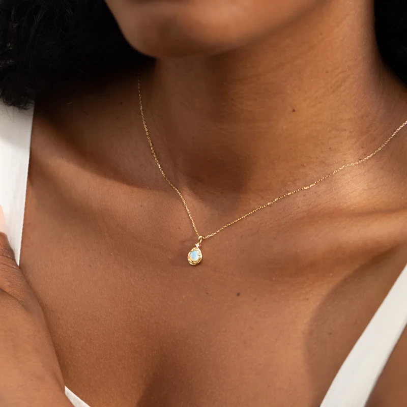 Embrace the beauty of this one-of-a-kind opal pebble necklace, designed to be as unique as you are. With its organic wave patterns on one side and a sleek, smooth finish on the other, it invites you to express yourself. The polished back is perfect for soothing moments, allowing you to rub it like a worry stone whenever you need a bit of calm. This necklace isn?t just an accessory; it?s a piece you?ll cherish now and one you can pass down, sharing its beauty and story with future generations. Let it be a reminder of your journey and a source of comfort in your everyday life.
