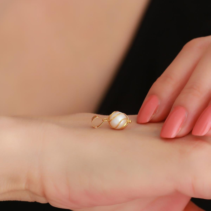 The gold surrounding the cultured pearl is crafted using Mardin's handcrafted filigree art, a special design by Bayar Gold.